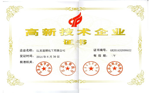 轉(zhuǎn)載請注明出處(道博化工獲得“江蘇省高新技術(shù)企業(yè)”認(rèn)定證書:/companynews/422)